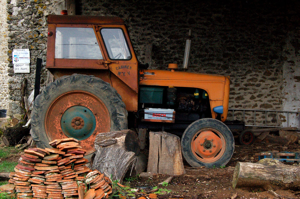 ... à Tournan, aux abords de la Ferme de Courcelles les vaches sont élevées en plein air. Le comité d'accueil : deux chiens énormes qui filent droit sur vous et un agriculteur qui vous regarde de travers quand vous évoquez la question d'un "éventuel tournage". L'homme m'a prêté son tracteur pour plusieurs scènes. Un vieux tacot orange, des années 70 comme je voulais. Le dernier jour, j'ai voulu lui acheter un mouton. Il était un peu tard. Devant le portail fermé j'ai tenté de le joindre avec mon portable. Il m'a raccroché au nez. Bizarre... Tu crois que m'a tête ne lui revenais pas ?