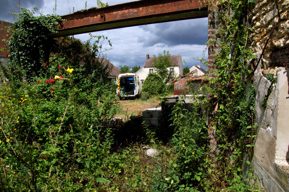 Un peu plus loin il y a les Vieilles Chapelles et après il y a Marles. Là-bas j'ai repéré cette ruine en centre ville. J'ai été frapper à la porte du proprio, un type bien, du genre que tout le monde connaît et qui connaît tout le monde, qui vous regarde d'un air serein. Sauvé! J'avais l'entrepôt, le champ de maïs, tout...